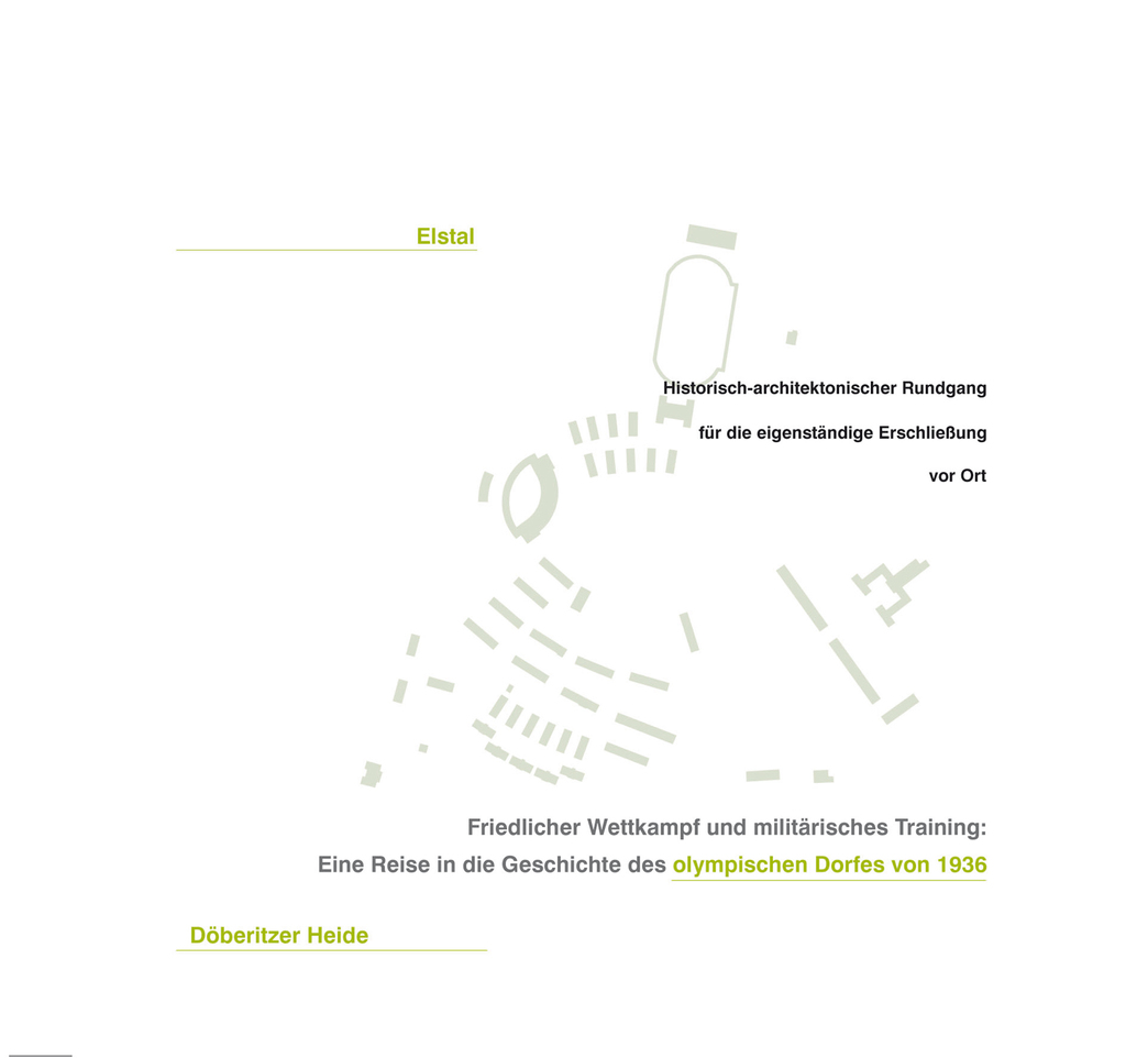 Die Arbeit umfasst einen historisch-architektonischen Rundgang über den ehemaligen Truppenübungsplatz Döberitzer Heide, das olympische Dorf von 1936 und die Gemeinde Elstal. Die entwickelte Broschüre dient der Besucherin und dem Besucher, sich die architektur- und geschichtsträchtige sowie unter Natur- und Denkmalschutz gestellte Region eigenständig zu erschließen.